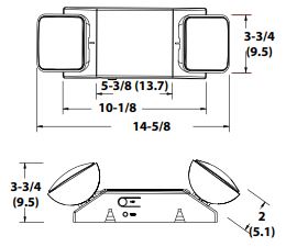 Description: Lithonia Lighting® Emergency Light, Series: EU2C, 120/277 V AC, 0.56/0.7 W Fixture, 0.072 A, 60 Hz Frequency, LED Lamp, 2 Heads, 10 years Average Life, Battery Power Source, Surface Mounting, 3-3/4 in H x 14-5/8 in W x 3-3/4 in D Dimensions, Thermoplastic, Ivory White