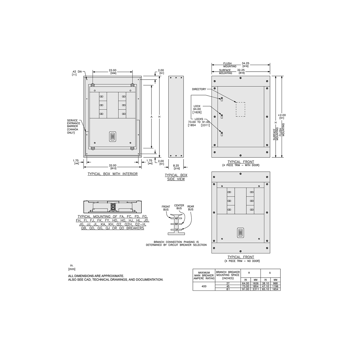 Description: Square D™ I-Line™ Panelboard Enclosure Box, 91 in Length, 32 in Width, 8-1/4 in Depth, Wall Mounting, Steel, Hot Dipped Galvanized, NEMA 1 Rating