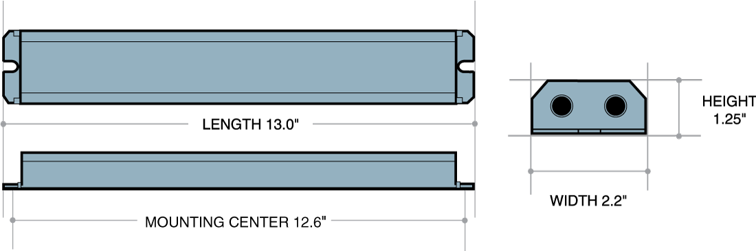 Dimensions 13 in L x 2.2 in W x 1.25 in H