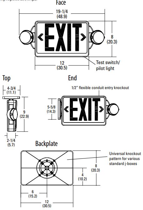 ▪ Suitable for applications requiring quick installation of both exit sign and unit equipment with a streamlined design for above the door applications and other tight fits